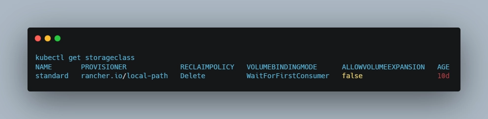 Here, we have a default standard StorageClass available, but you can create one using storage tools like Longhorn, Ceph, or OpenEBS, depending on your storage needs.