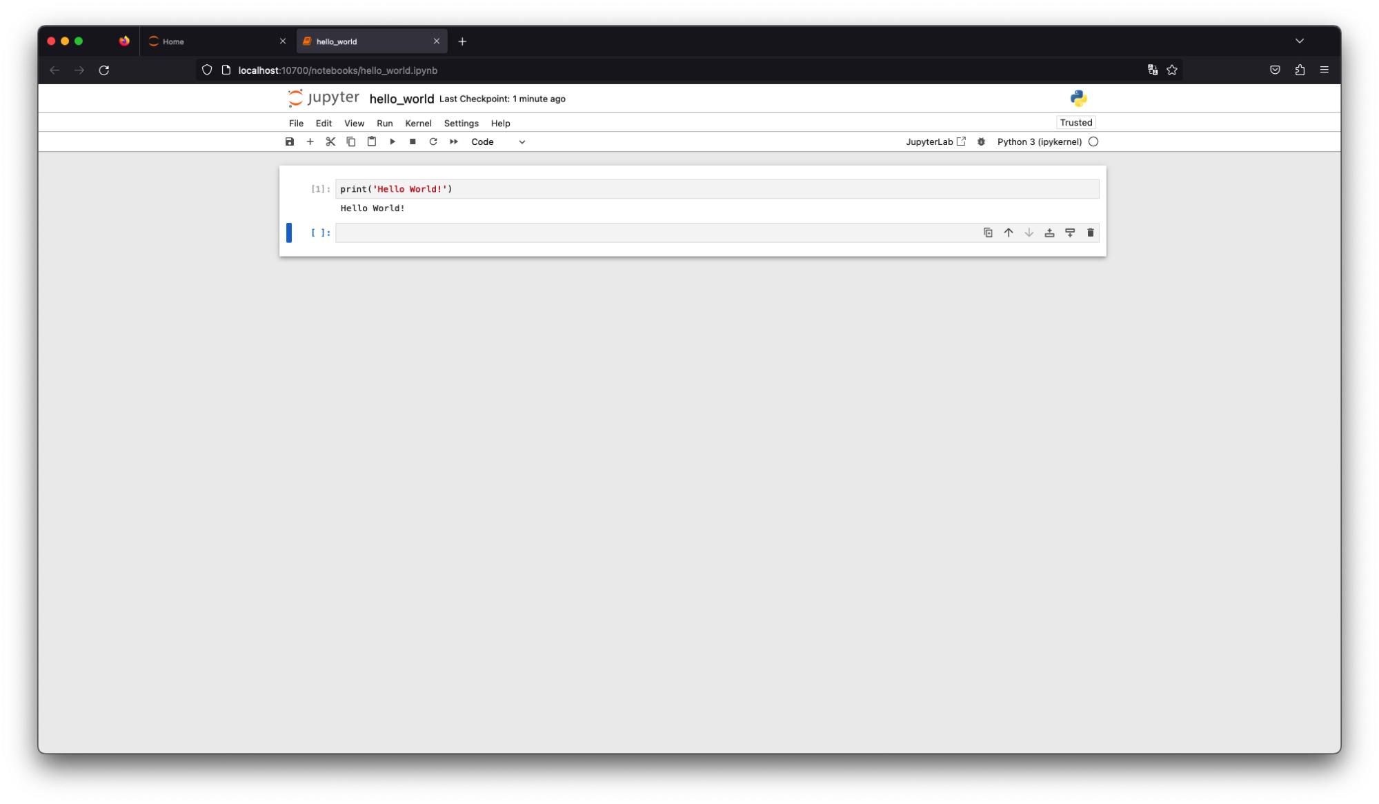 Now you can run Hello World! somewhere with real power, instead of locally, in around a minute.