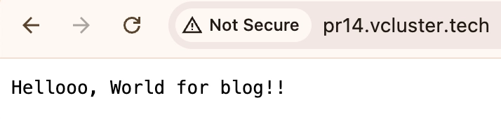 The application is accessible at http://pr<PR_NUMBER>.vcluster.tech.