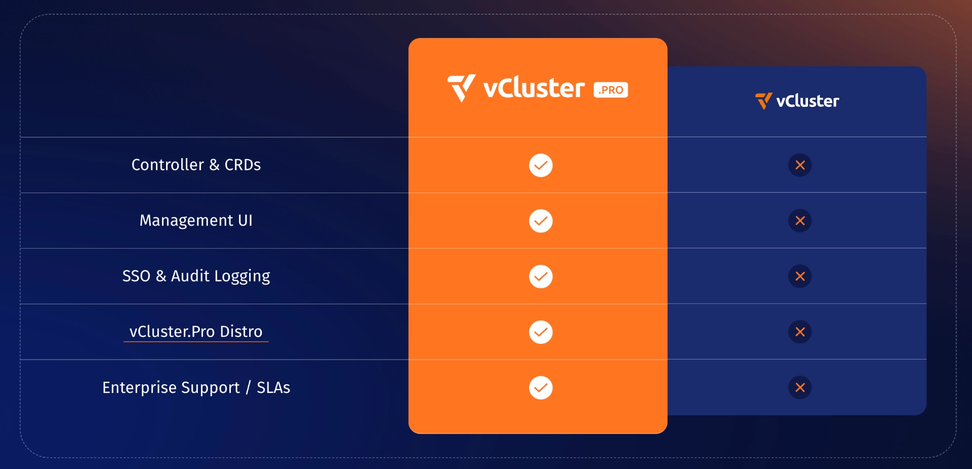 We also have vCluster pro that gives you additional features for your enterprise, so you can join the slack community and message us if you are interested in trying out vCluster pro.