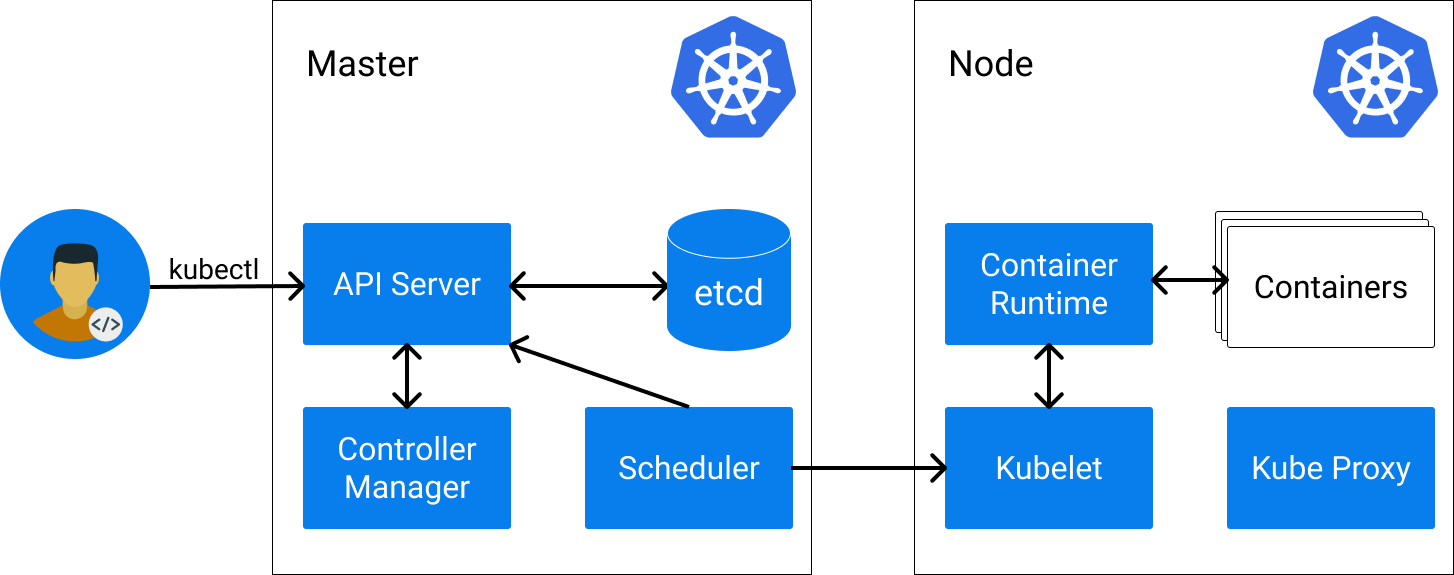 apiVersion: v1 kind: Node metadata: name: docker-desktop status: addresses: - address: 192.168.65.3 type: InternalIP - address: docker-desktop type: Hostname allocatable: cpu: "4" ephemeral-storage: "56453061334" hugepages-1Gi: "0" hugepages-2Mi: "0" memory: 3932656Ki pods: "110" ...Pods describe workloads in Kubernetes and define which container images will be executed. A pod can consist of one or several containers that can share resources such as storage and network. Pods are always assigned to exactly one node and are then executed there. This is handled either automatically by Kubernetes or manually. Pods are treated Kubernetes-internally as “cattle” and can always be terminated or restarted by Kubernetes again, e.g. to move them to another node. A single pod starting an nginx container on a node looks like this: