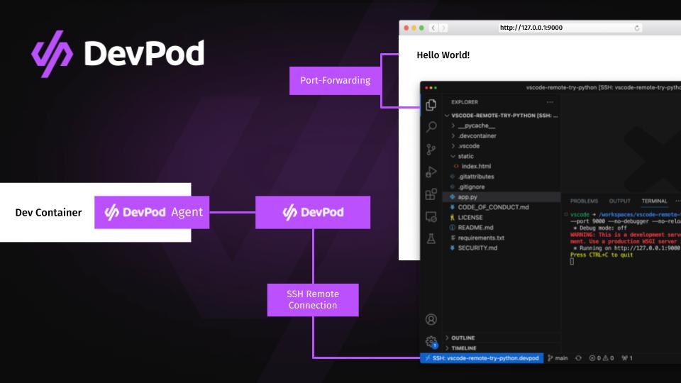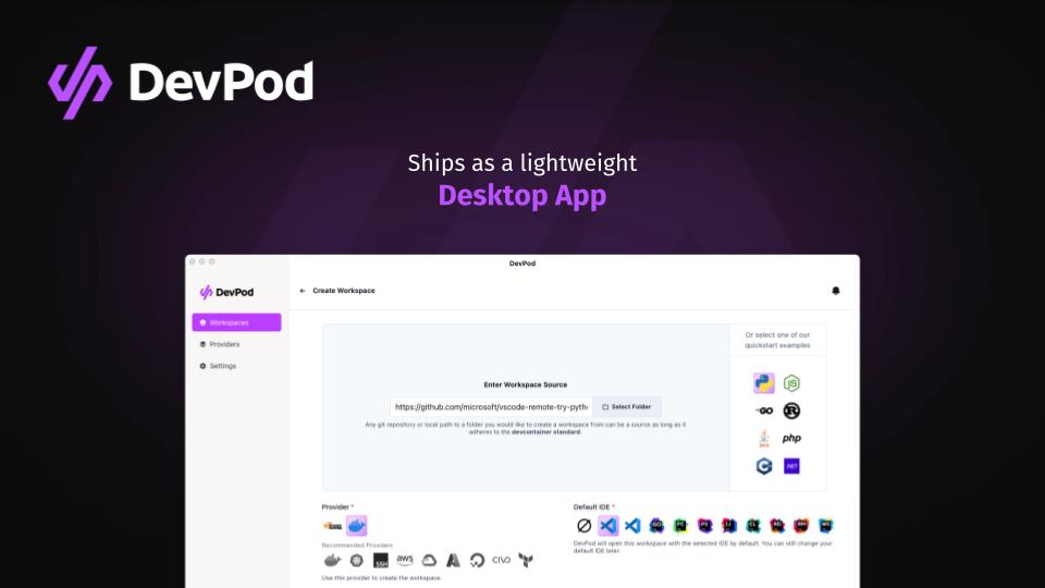 - Client-only: No need to install a server backend. DevPod runs solely on your computer.