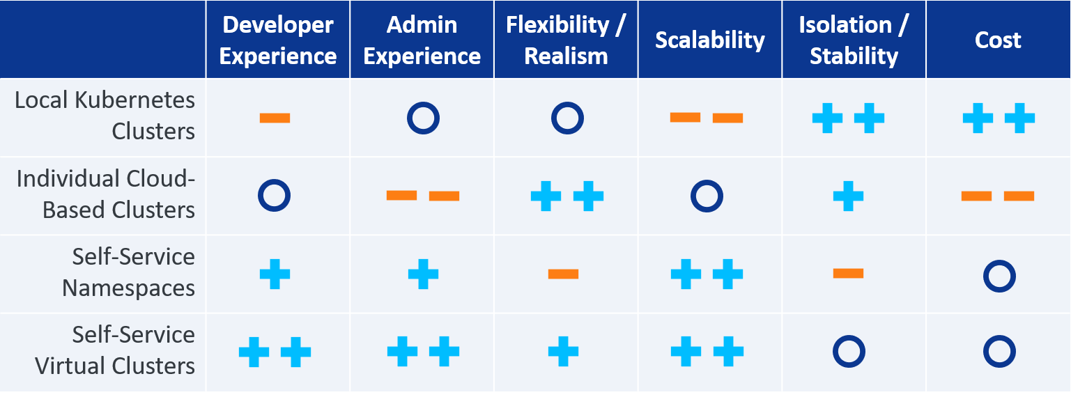 Finally, shared clusters, which are the basis for either self-service namespaces or virtual clusters, are a solution that combines cost-efficiency with a good developer and admin experience. Although these solutions are not free and require some initial setup effort, they are a long-term solution even for larger companies.