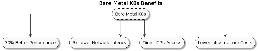 Running Kubernetes directly on physical hardware delivers substantial benefits: