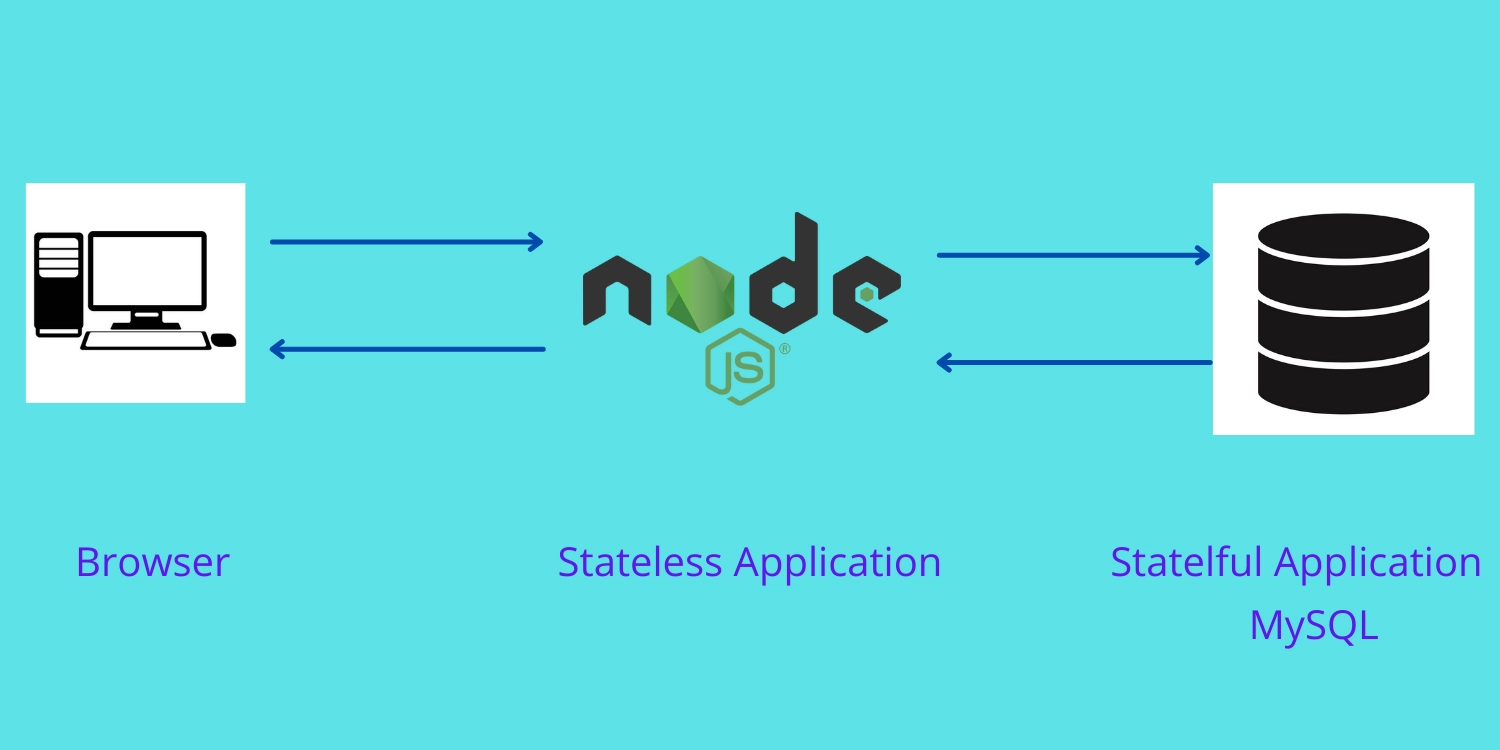 A modern web application uses both types of applications to serve user requests. For example, Node.js, a stateless application, receives new data on each user request. It then connects to a stateful application like MySQL to process the data. MySQL then stores and updates the data based on the user's request.