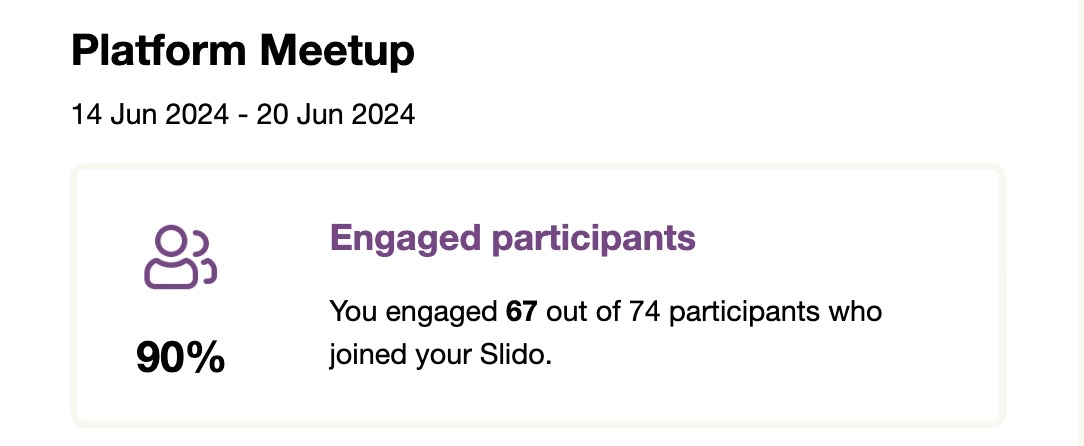 The engagement was around 90% of the people participating in the fun quizzes and questions and having a lot of networking sessions in between.