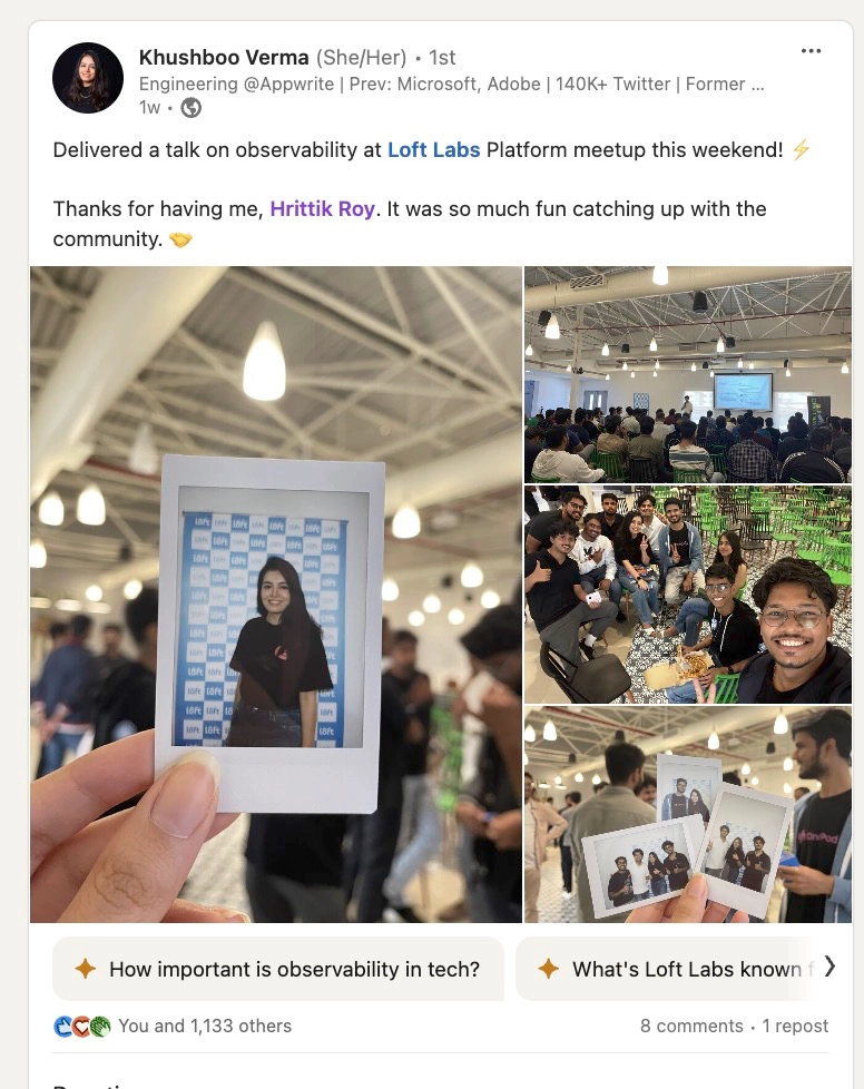 By the evening, we had so many social posts sharing their experiences about the meetup and being excited for the next one. Here are a few of these: