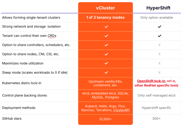 Comparison to vCluster