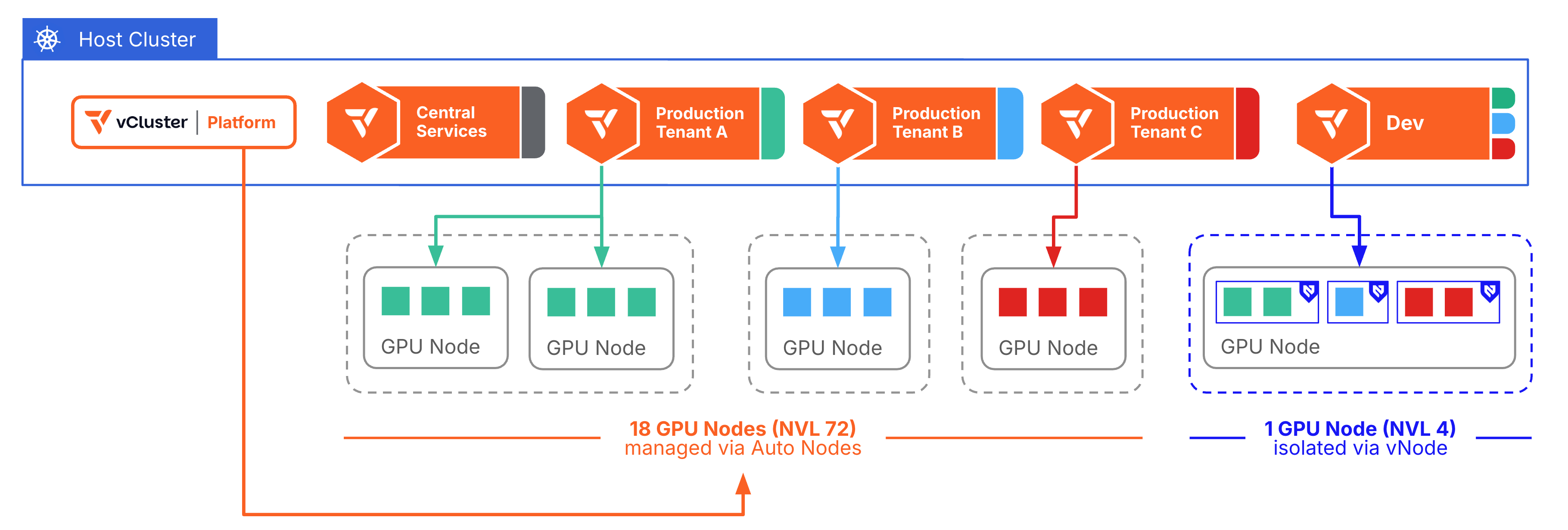 GPU and Regulated Workloads: Virtual and/or auto node modes enable GPU-aware scheduling and compliance-grade isolation. Platform teams can maximize GPU utilization while ensuring that tenant workloads cannot interfere with one another.