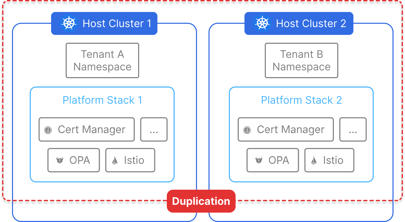 - ❌ Duplicates platform components across clusters
