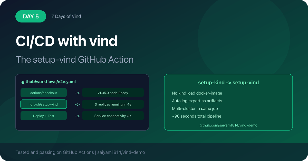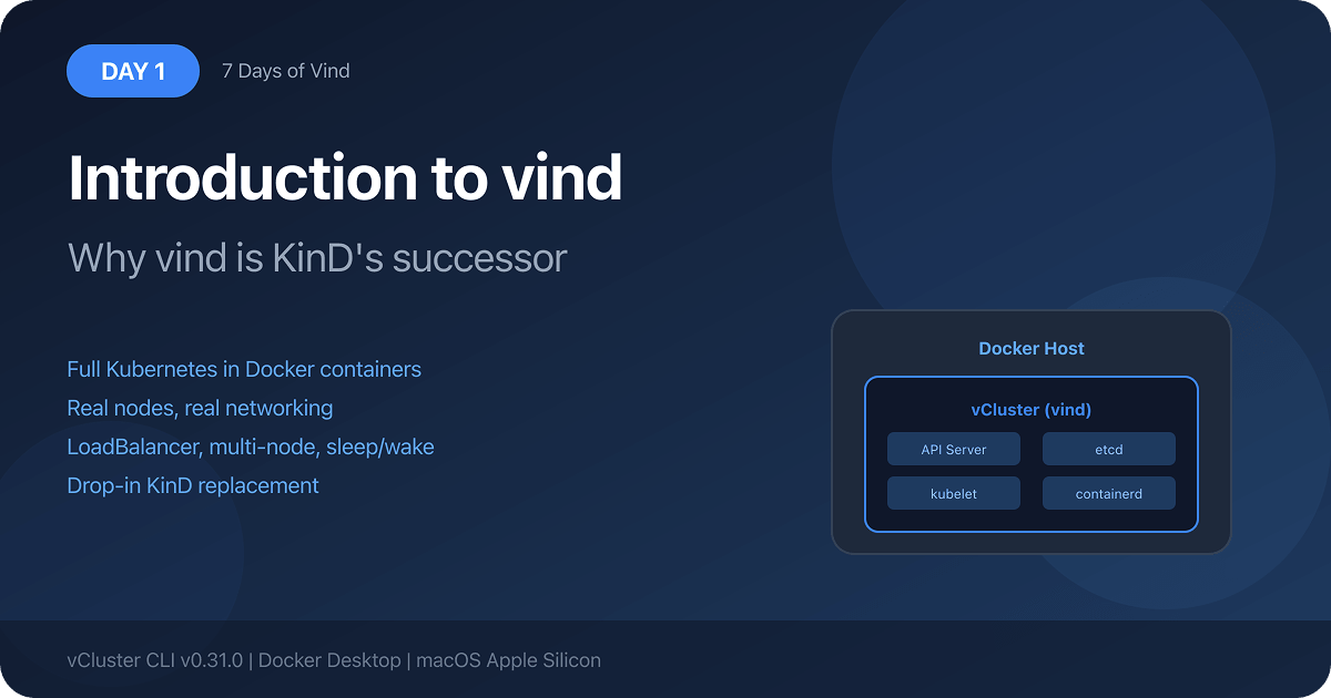 vīnd eliminates all of these pain points with zero additional configuration. Just Docker and the vCluster CLI. You get everything KinD was missing.